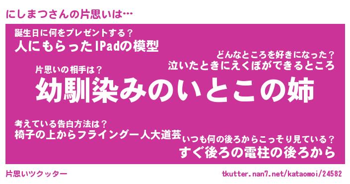 | 男性向けラノベタイトル風あだ名 | 『にしまつの憂鬱』 |
