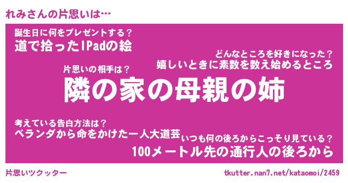 | 胡散臭い通販商品みたいなあだ名 | 『必ず成功するブレスレット…その名も「れみ」』 |