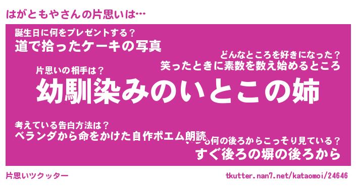 | ファンタジー風あだ名 | 『ハガフェル』『エターナルハガトモヤー』 |