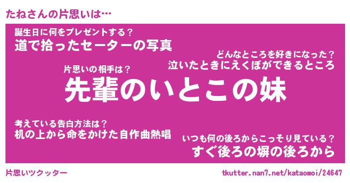 | ヘコむあだ名 | 『たねにゅー』『なまこ酢』 |