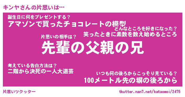 | 胡散臭い通販商品みたいなあだ名 | 『モテモテ間違いなし水晶球…その名も「キンヤ」』 |