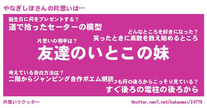 | 胡散臭い通販商品みたいなあだ名 | 『億万長者になれる水晶球…その名も「やなぎしほ」』 |
