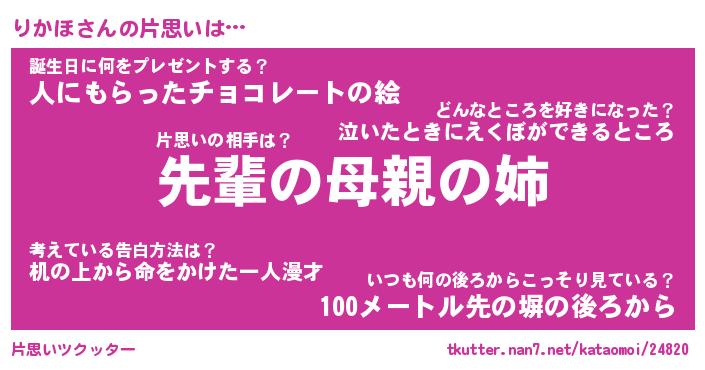 | 胡散臭い通販商品みたいなあだ名 | 『モテモテ間違いなしブレスレット…その名も「りかほ」』 |