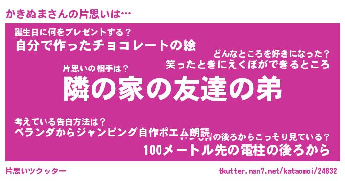 | 2回繰り返すあだ名 | 『かきかき』『かかきき』『ぽつぽつ』 |