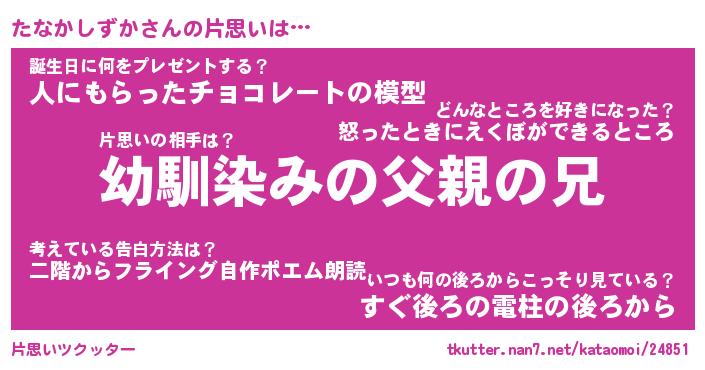 | 胡散臭い通販商品みたいなあだ名 | 『必ず成功するブレスレット…その名も「たなかしずか」』 |