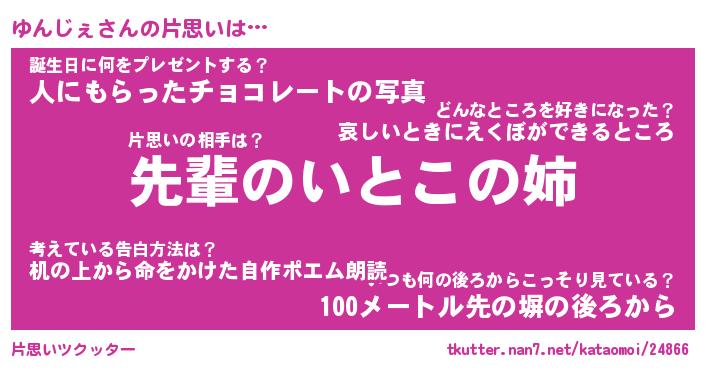 | 胡散臭い通販商品みたいなあだ名 | 『モテモテ間違いなし水晶球…その名も「ゆんじぇ」』 |