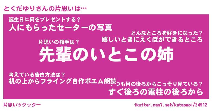 | 胡散臭い通販商品みたいなあだ名 | 『モテモテ間違いなし水晶球…その名も「とくだゆり」』 |