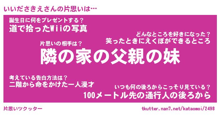 | 男性向けラノベタイトル風あだ名 | 『いいださきえの憂鬱』 |