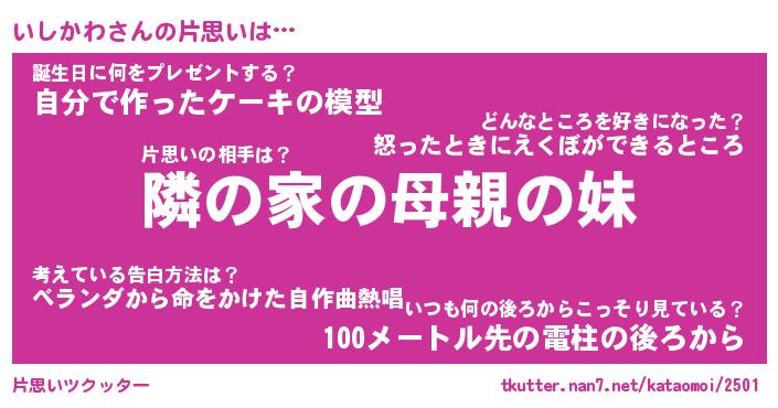 | 男性向けラノベタイトル風あだ名 | 『いしかわの憂鬱』 |