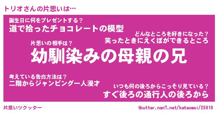 | ヘコむあだ名 | 『トリにー』『牛乳』『トリぷりん』 |