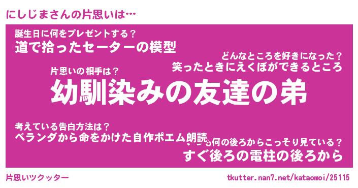 | 意味不明あだ名 | 『ペロリンにしじま』『永久保存にしじま』 |