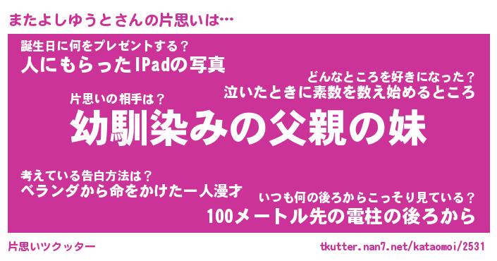 | 恥ずかしいあだ名 | 『プリティーまたよしゆうと』『またちん』 |