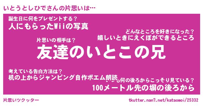 | ヘコむあだ名 | 『いとにゅー』『レバニラ』『いとを』 |