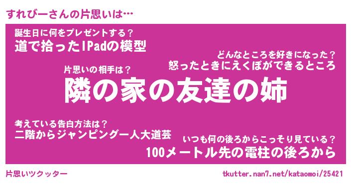 | 男性向けラノベタイトル風あだ名 | 『すれびーの憂鬱』 |