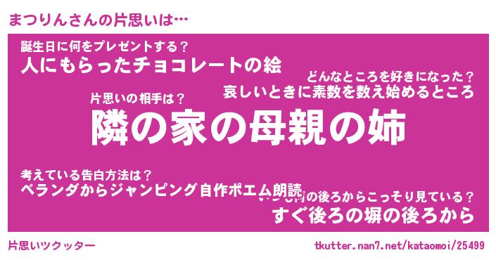 | 胡散臭い通販商品みたいなあだ名 | 『必ず成功するブレスレット…その名も「まつりん」』 |