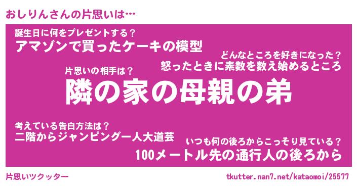 | 男性向けラノベタイトル風あだ名 | 『おしりんの憂鬱』 |