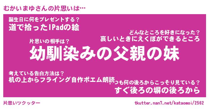 | 男性向けラノベタイトル風あだ名 | 『むかいまゆの憂鬱』 |