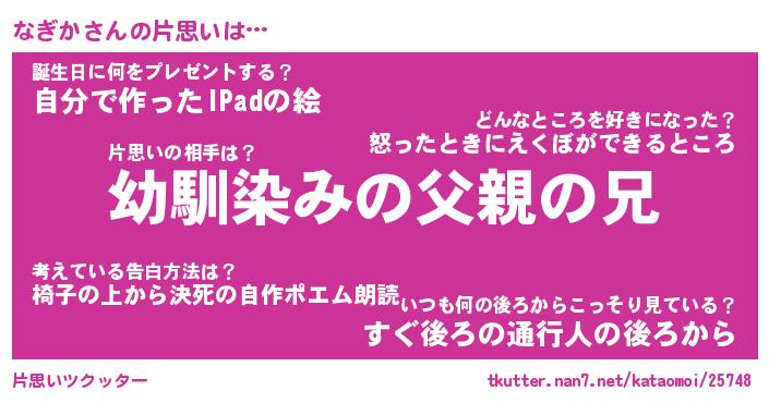 | ヘコむあだ名 | 『なぎふぇ~』『なまこ酢』 |