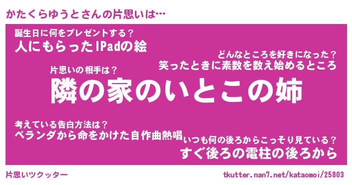 | 女子向けラノベタイトル風あだ名 | 『(仮)かたくらゆうとのやんごとなき事情』 |