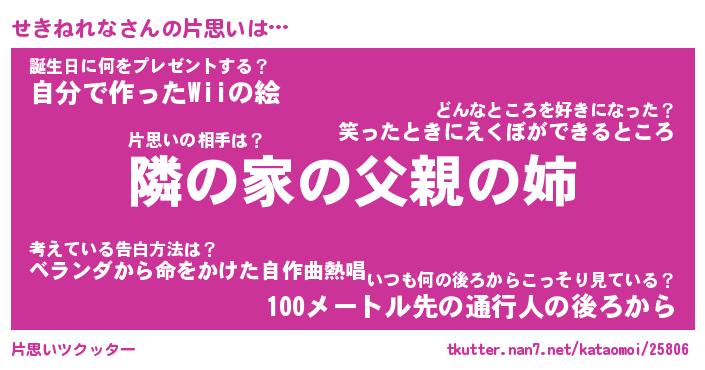 | 胡散臭い通販商品みたいなあだ名 | 『必ず成功するブレスレット…その名も「せきねれな」』 |