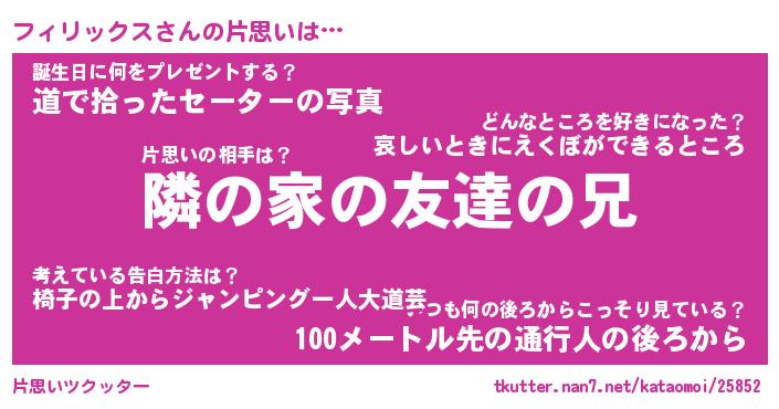 | 男性向けラノベタイトル風あだ名 | 『フィリックスの憂鬱』 |