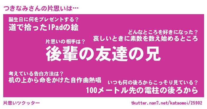 | ポケモン風あだ名 | 『ツキチュウ』『ツキナダネ』 |