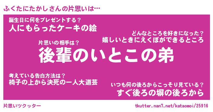 | ヘコむあだ名 | 『ふくもー』『酢こんぶ』『ふくお』 |
