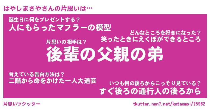 | 女子向けラノベタイトル風あだ名 | 『誰かこのはやしまさやを説明してください! ~契約から始まるウェディング~』 |