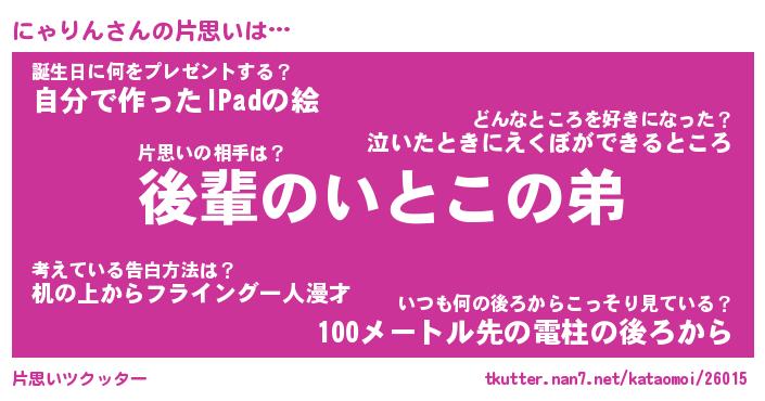 | ツイッター | にゃりんさんのツイッターID『namakemono_kun』 |
