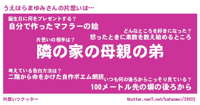 | 恥ずかしいあだ名 | 『プリティーうえはらまゆみ』『うえちん』 |