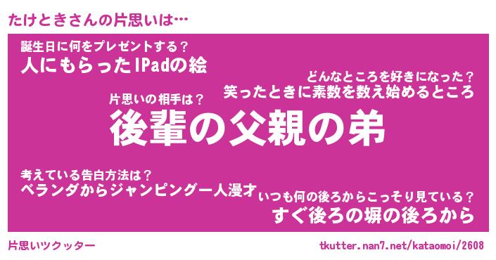| 意味不明あだ名 | 『ペロリンたけとき』『永久保存たけとき』 |