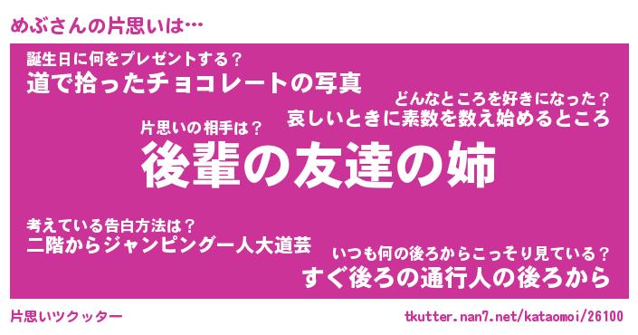 | ヘコむあだ名 | 『めぶもー』『豆乳』『めぶ太郎』 |