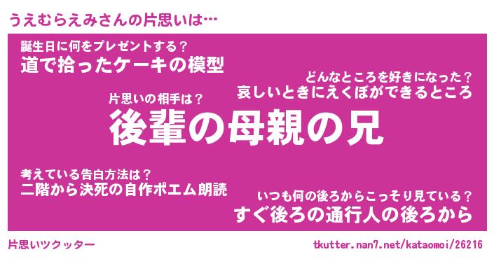 | 肩書あだ名 | 『うえむらえみ社長』『うえむらえみ先生』 |