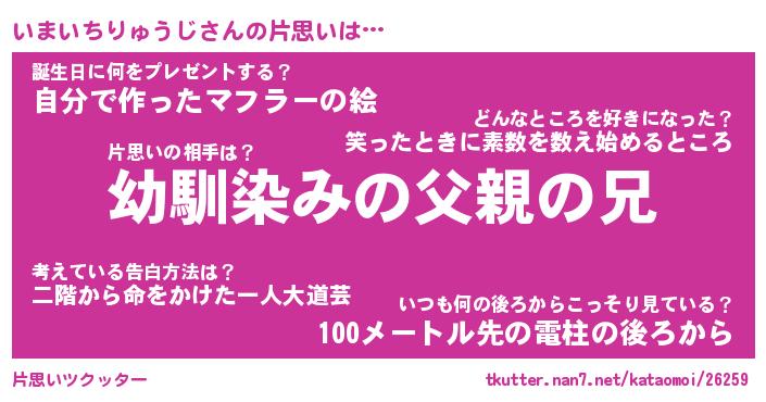 | 男性向けラノベタイトル風あだ名 | 『いまいちりゅうじの憂鬱』 |
