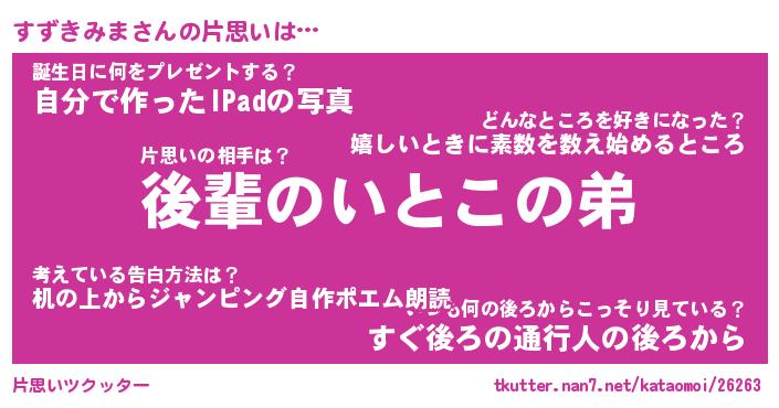 | 胡散臭い通販商品みたいなあだ名 | 『モテモテ間違いなし水晶球…その名も「すずきみま」』 |