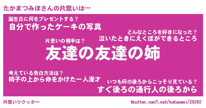 | ヘコむあだ名 | 『たかっふぃ~』『つくし』 |
