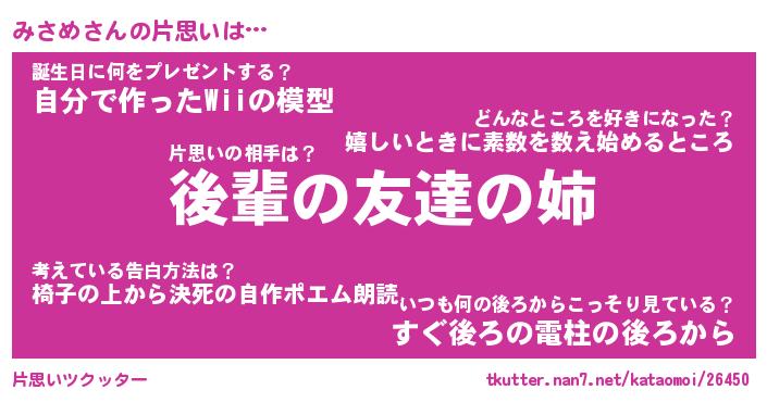 | 胡散臭い通販商品みたいなあだ名 | 『モテモテ間違いなし霊験あらたかなお札…その名も「みさめ」』 |