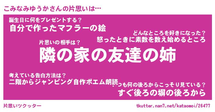 | 胡散臭い通販商品みたいなあだ名 | 『必ず成功する霊験あらたかなお札…その名も「こみなみゆうか」』 |
