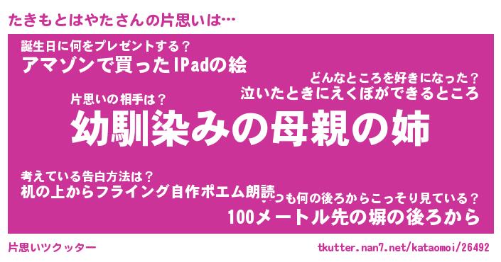 | ヘコむあだ名 | 『たきにー』『なまこ酢』『たきっ子』 |