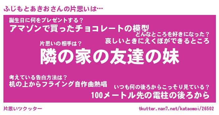 | 女子向けラノベタイトル風あだ名 | 『(仮)ふじもとあきおのやんごとなき事情』 |