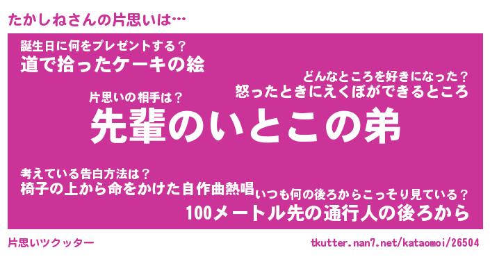| 男性向けラノベタイトル風あだ名 | 『たかしねの憂鬱』 |