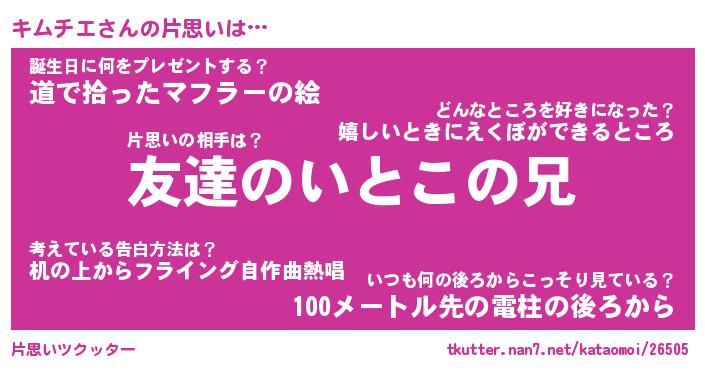 | 意味不明あだ名 | 『ペロリンキムチエ』『永久保存キムチエ』 |