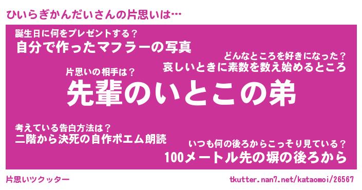 | 胡散臭い通販商品みたいなあだ名 | 『モテモテ間違いなし水晶球…その名も「ひいらぎかんだい」』 |