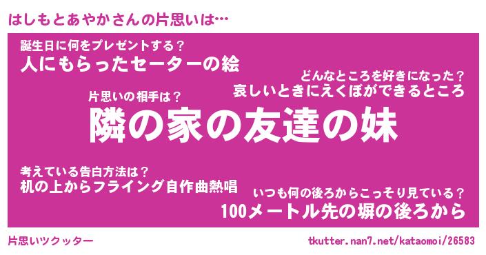 | 胡散臭い通販商品みたいなあだ名 | 『必ず成功する霊験あらたかなお札…その名も「はしもとあやか」』 |