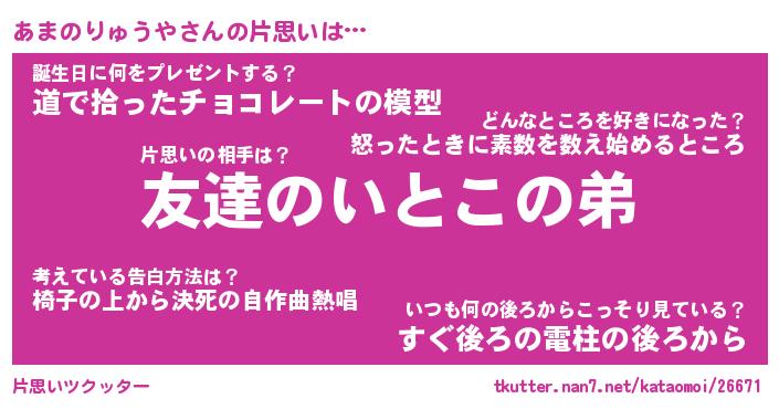 | 胡散臭い通販商品みたいなあだ名 | 『億万長者になれる水晶球…その名も「あまのりゅうや」』 |