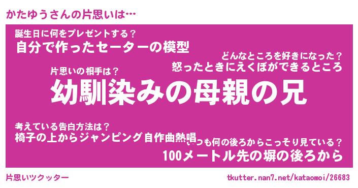 | ヒーロー風カッコイイあだ名 | 『スーパーカタユウ』『暗黒騎士カタ』 |