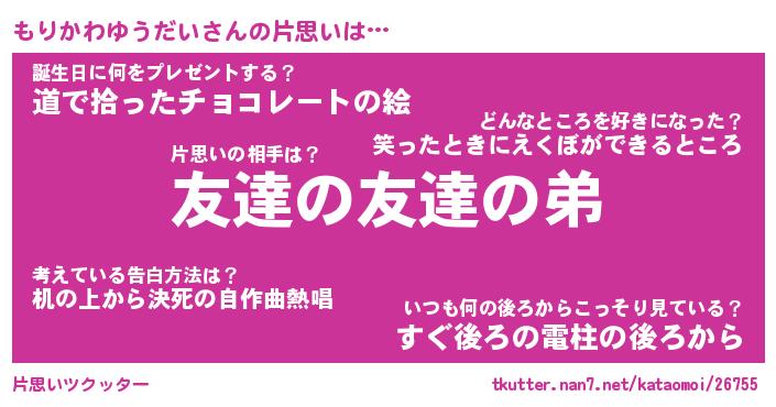 | 胡散臭い通販商品みたいなあだ名 | 『億万長者になれる霊験あらたかなお札…その名も「もりかわゆうだい」』 |