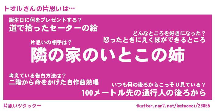 | 胡散臭い通販商品みたいなあだ名 | 『必ず成功する水晶球…その名も「トオル」』 |