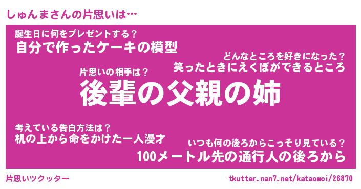 | ヘコむあだ名 | 『しゅふぇ~』『つくし』『しゅっ子』 |