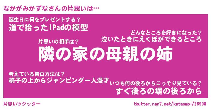| 胡散臭い通販商品みたいなあだ名 | 『必ず成功するブレスレット…その名も「なかがみかずな」』 |
